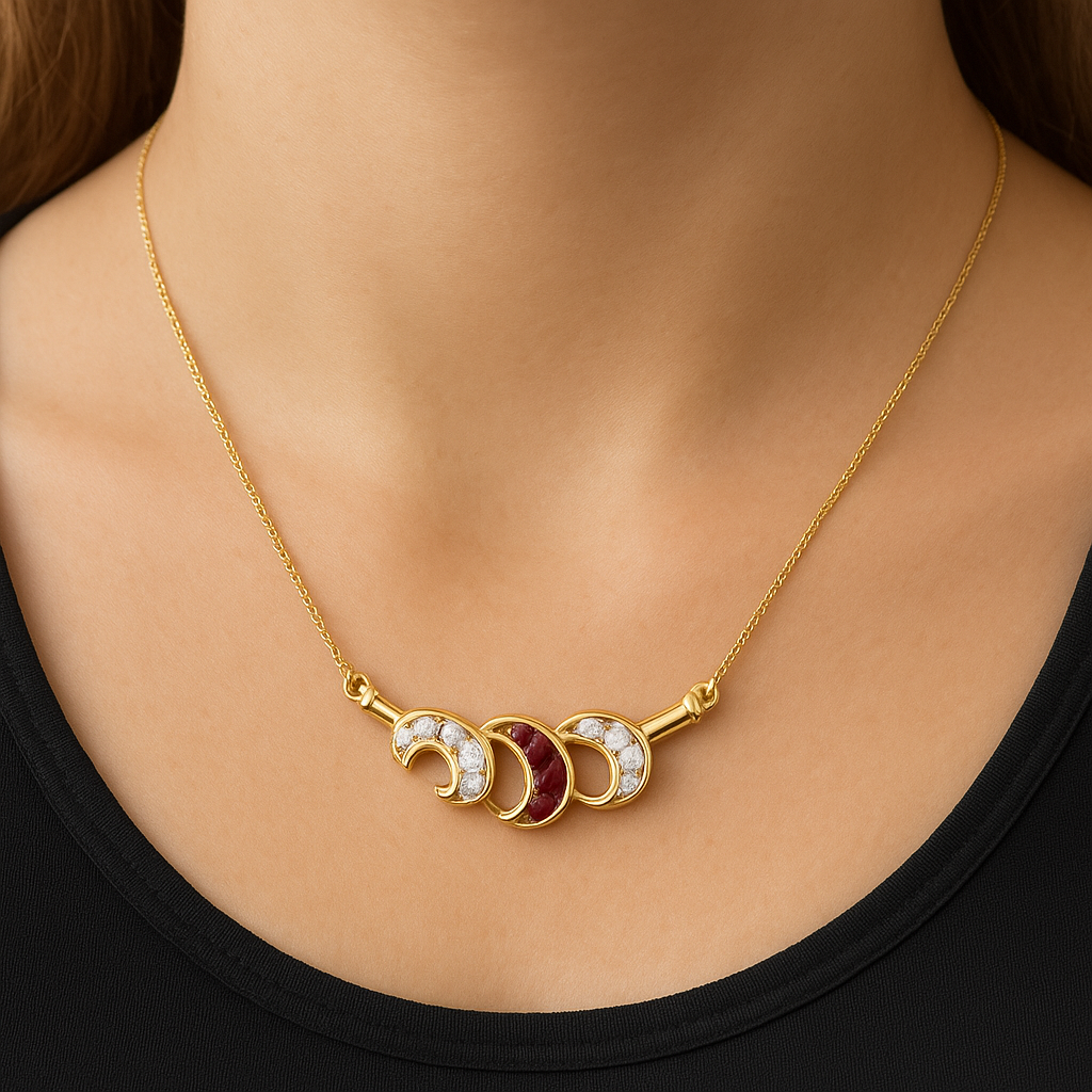 This elegant 9ct gold pendant features a captivating ruby complemented by 0.35 carats of sparkling diamonds. Suspended from an 18-inch chain, it offers a balanced blend of vibrant colour and timeless brilliance. Perfect for adding a refined touch to any ensemble, this pendant highlights expert craftsmanship and quality gemstones.