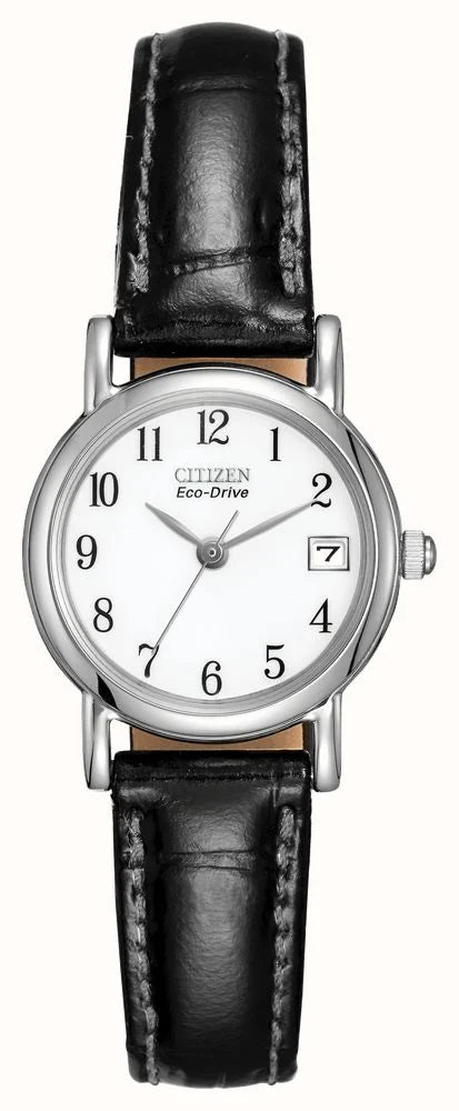 Citizen Women's White Dial Black Leather Strap Eco-Drive EW1270-06A