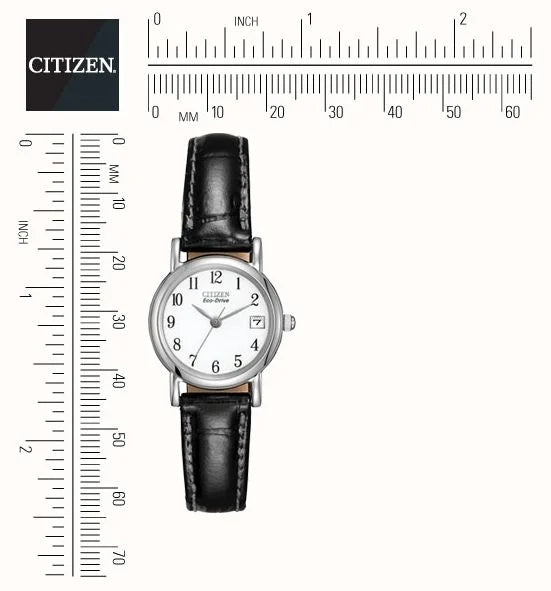 Embrace timeless elegance with the Citizen Women's Eco-Drive EW1270-06A, featuring a classic white dial and sophisticated black leather strap, all powered by revolutionary solar technology for effortless daily wear.